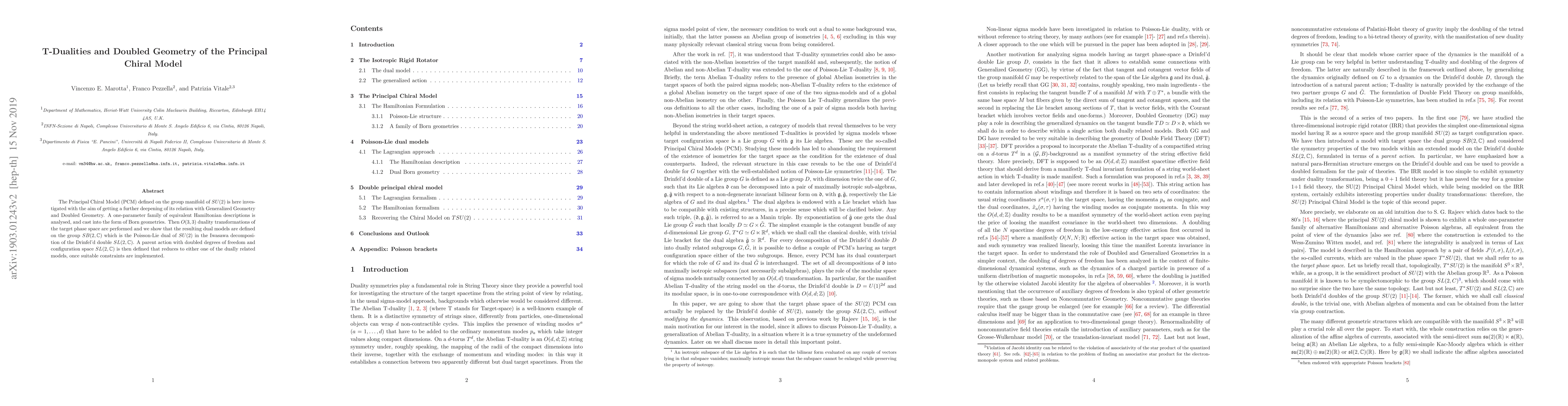 This paper explores the Principal Chiral Model on SU(2) and its connection to Generalized and Doubled Geometry, introducing a family of Hamiltonian descriptions and O(3,3) duality transformations. It reveals a new duality between the SU(2) model and one on its Poisson-Lie dual, SB(2,C), within a parent action framework.