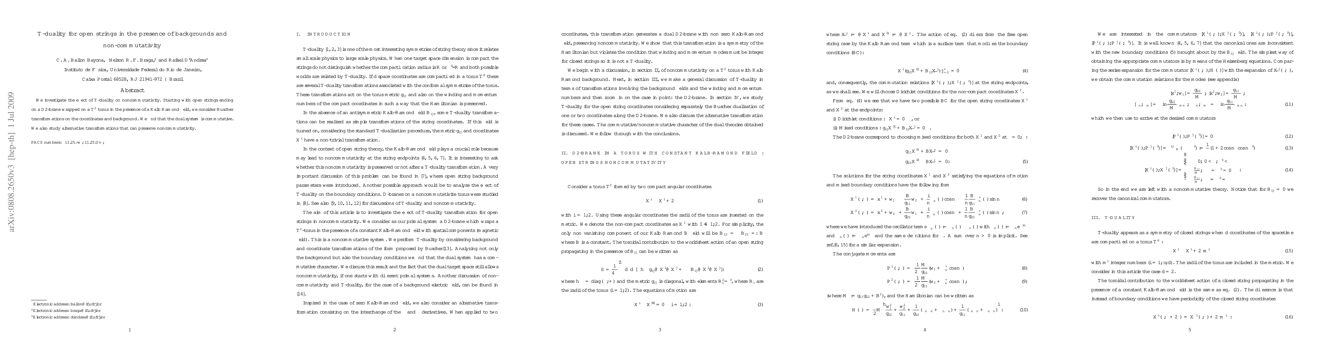 Summary: The paper examines T-duality's impact on noncommutativity in open strings on D2-branes, revealing that Buscher transformations lead to a commutative dual system, while alternative transformations can maintain noncommutativity.