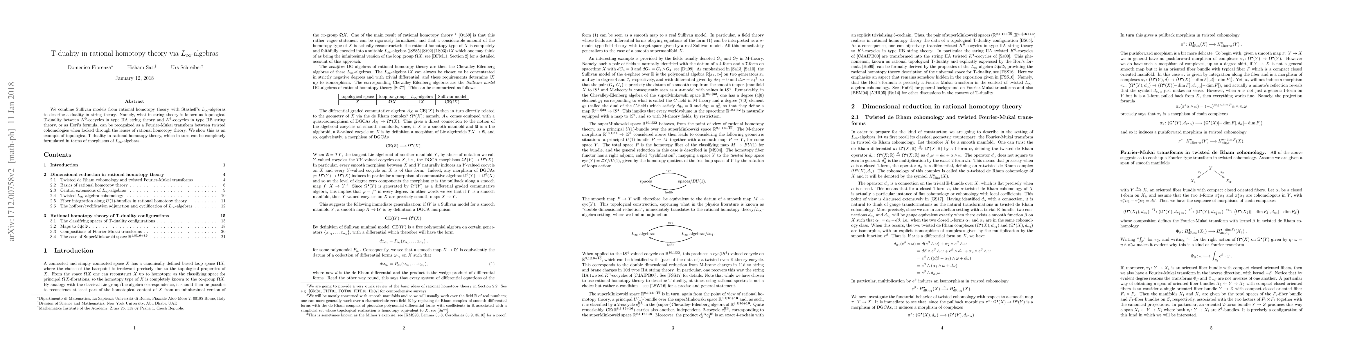 This paper connects Sullivan models from rational homotopy theory with Stasheff's $L_\infty$-algebras to describe topological T-duality in string theory, showing it as a Fourier-Mukai transform in rational homotopy theory and fully formulated via $L_\infty$-algebra morphisms.