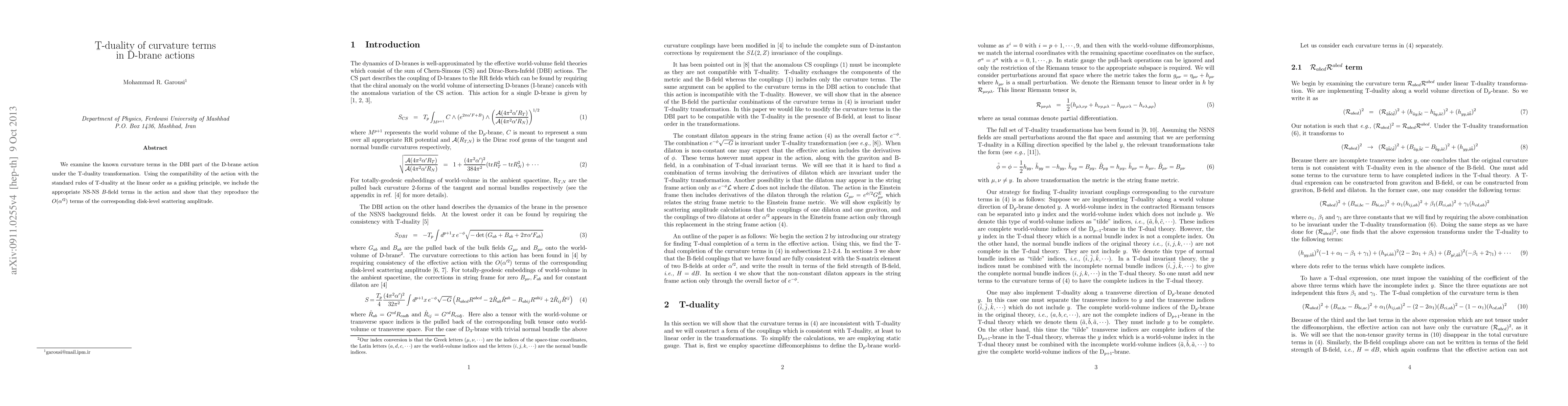 This research explores the transformation of curvature terms in D-brane actions under T-duality, incorporating NS-NS $B$-field terms to maintain consistency with T-duality rules, and demonstrates that these modifications accurately reproduce higher-order scattering amplitude terms.
