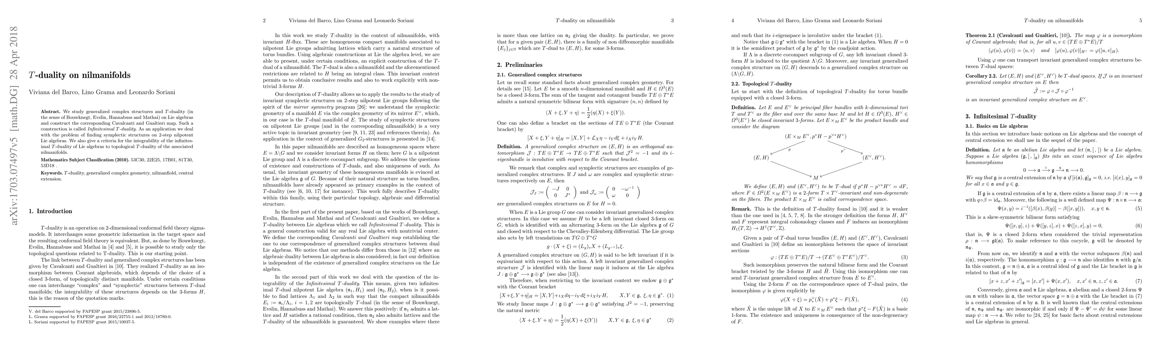 This paper explores infinitesimal $T$-duality on Lie algebras through generalized complex structures and constructs the Cavalcanti and Gualtieri map. It provides criteria for the integrability of infinitesimal $T$-duality to the topological $T$-duality of associated nilmanifolds and discusses finding symplectic structures on 2-step nilpotent Lie algebras.
