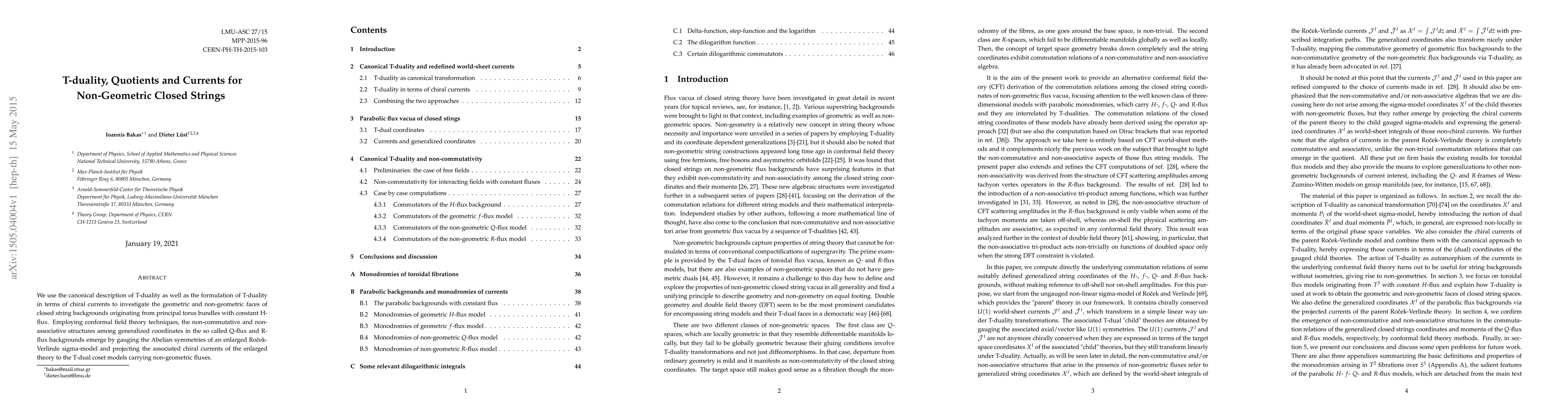 This paper explores T-duality in closed string theory, using conformal field theory to reveal non-commutative structures in Q-flux and R-flux backgrounds, and links these to principal torus bundles with constant H-flux through chiral currents.