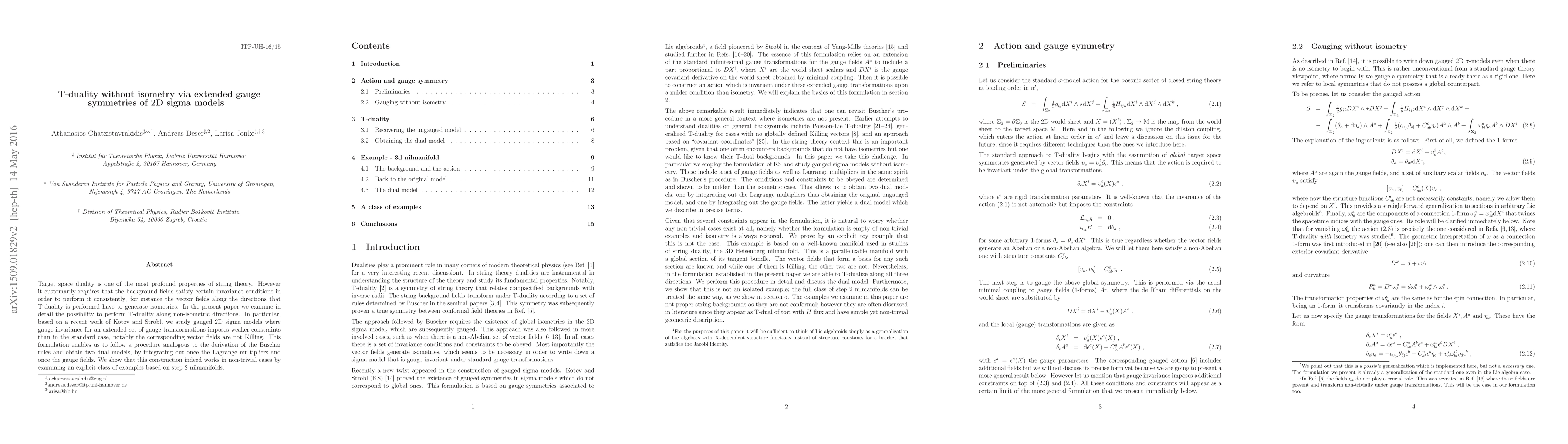 Target space duality is one of the most profound properties of string theory. However it customarily requires that the background fields satisfy certain invariance conditions in order to perform it consistently; for instance the vector fields along the directions that T-duality is performed have to generate isometries. In the present paper we examine in detail the possibility to perform T-duality along non-isometric directions. In particular, based on a recent work of Kotov and Strobl, we study gauged 2D sigma models where gauge invariance for an extended set of gauge transformations imposes weaker constraints than in the standard case, notably the corresponding vector fields are not Killing. This formulation enables us to follow a procedure analogous to the derivation of the Buscher rules and obtain two dual models, by integrating out once the Lagrange multipliers and once the gauge fields. We show that this construction indeed works in non-trivial cases by examining an explicit class of examples based on step 2 nilmanifolds.