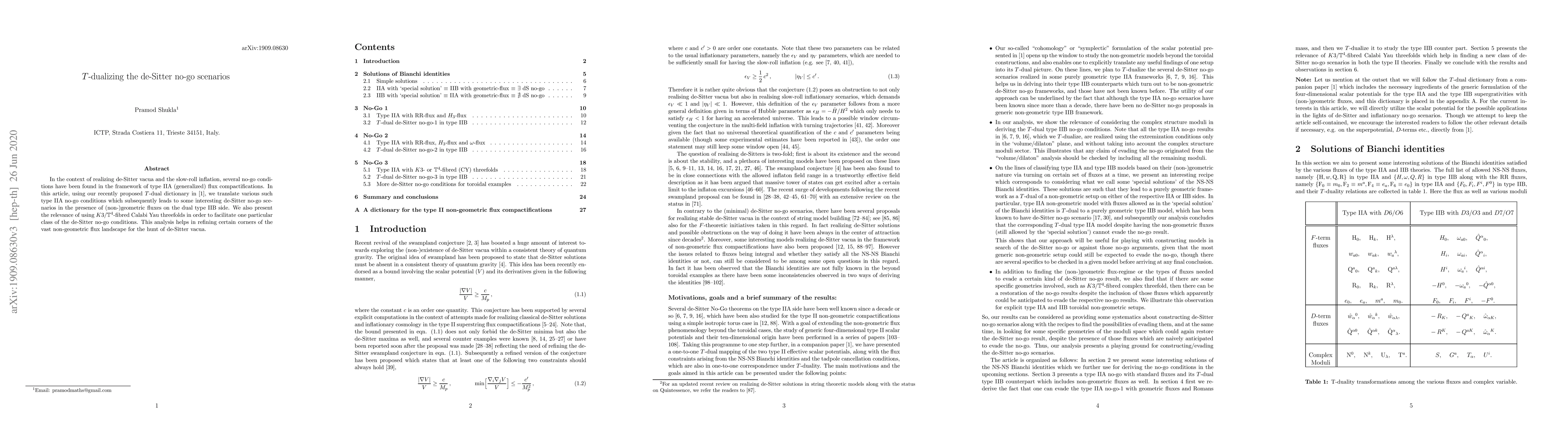 This paper explores the translation of de-Sitter no-go conditions from type IIA to type IIB using a $T$-dual dictionary, revealing new insights into the viability of de-Sitter vacua in the presence of non-geometric fluxes. The study highlights the importance of $K3/{\mathbb T}^4$-fibred Calabi Yau threefolds in addressing specific de-Sitter scenarios.