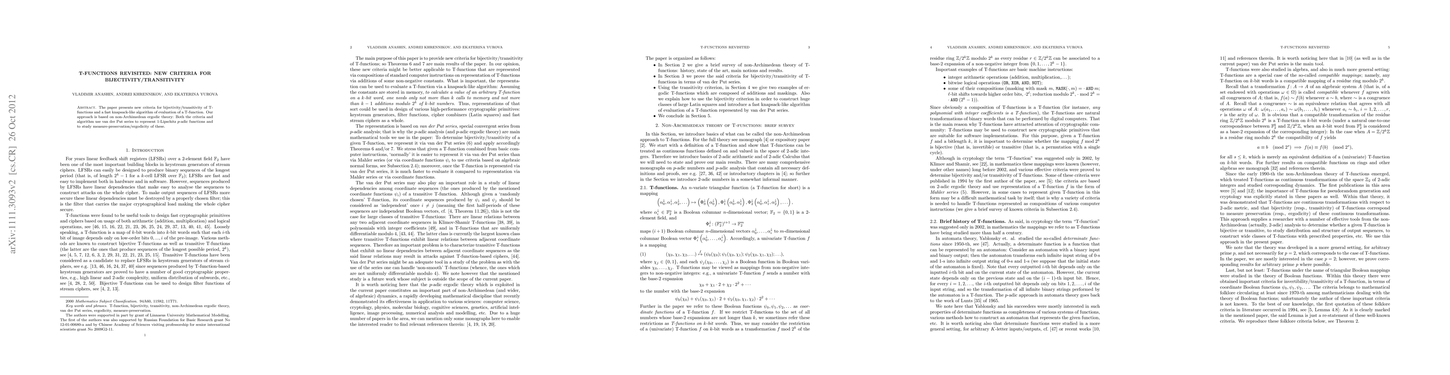 Researchers introduced new criteria for determining if T-functions are bijective and transitive, using non-Archimedean ergodic theory and a fast algorithm for evaluation.