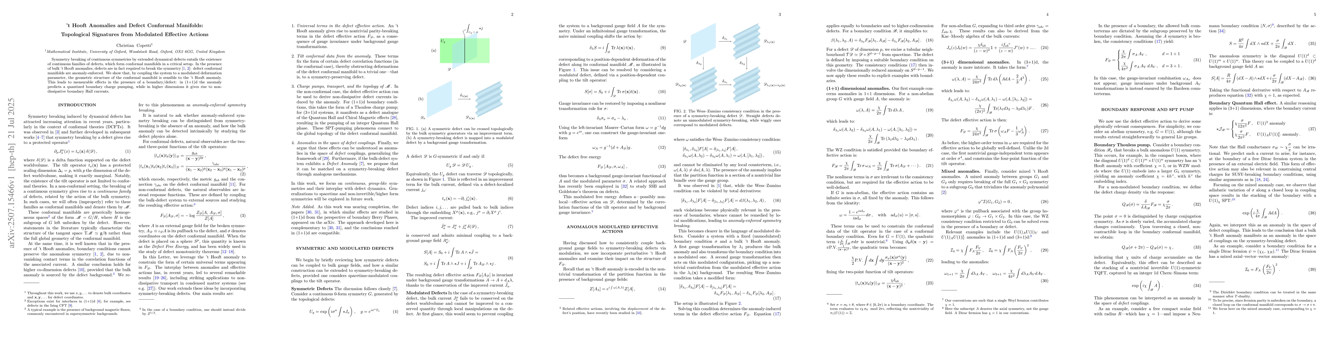 This research extends existing understanding of 't Hooft anomalies by demonstrating their crucial role in shaping defect conformal manifolds and inducing exotic transport phenomena, offering new perspectives on symmetry breaking and anomaly inflow in quantum field theories.