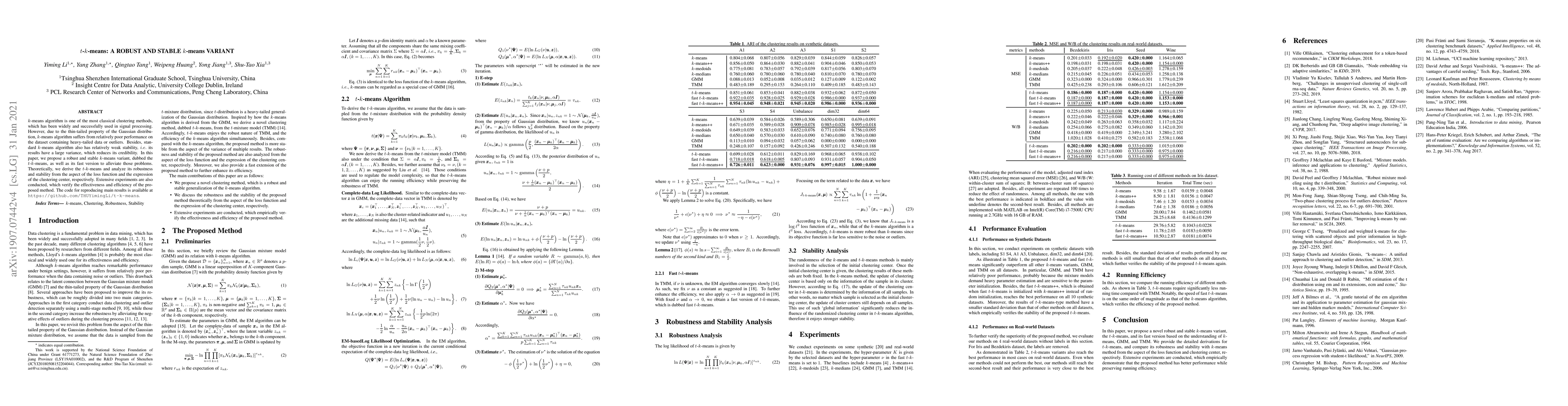 This paper introduces a robust and stable variant of the $k$-means clustering algorithm, called $t$-$k$-means, designed to address its shortcomings in handling heavy-tailed data and outliers while improving stability. The proposed method is theoretically analyzed and experimentally validated for its effectiveness and efficiency.