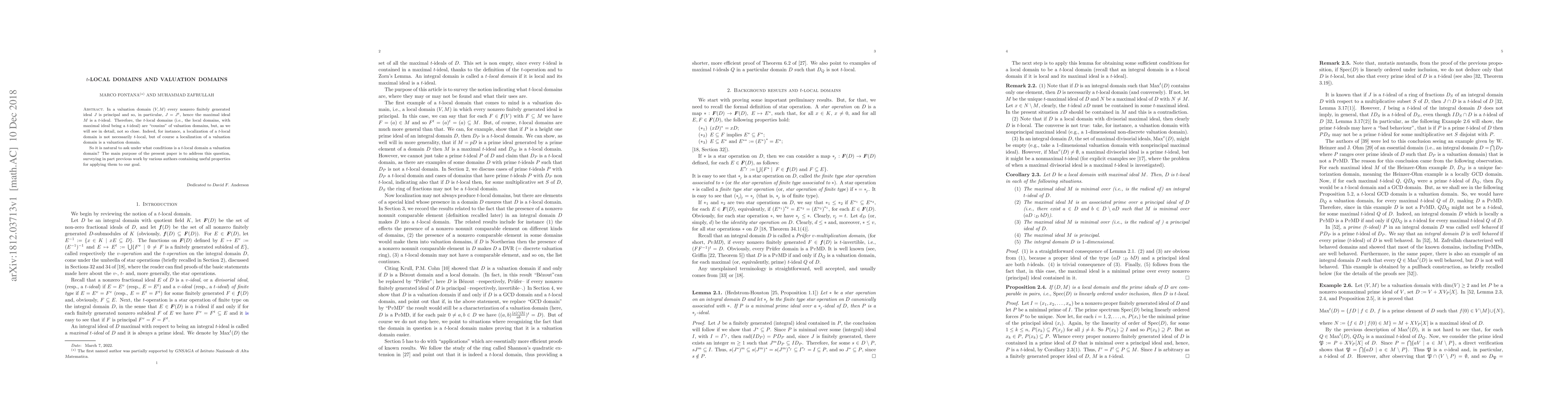 In a valuation domain $(V,M)$ every nonzero finitely generated ideal $J$ is principal and so, in particular, $J=J^t$, hence the maximal ideal $M$ is a $t$-ideal. Therefore, the $t$-local domains (i.e., the local domains, with maximal ideal being a $t$-ideal) are "cousins" of valuation domains, but, as we will see in detail, not so close. Indeed, for instance, a localization of a $t$-local domain is not necessarily $t$-local, but of course a localization of a valuation domain is a valuation domain. So it is natural to ask under what conditions is a $t$-local domain a valuation domain? The main purpose of the present paper is to address this question, surveying in part previous work by various authors containing useful properties for applying them to our goal.