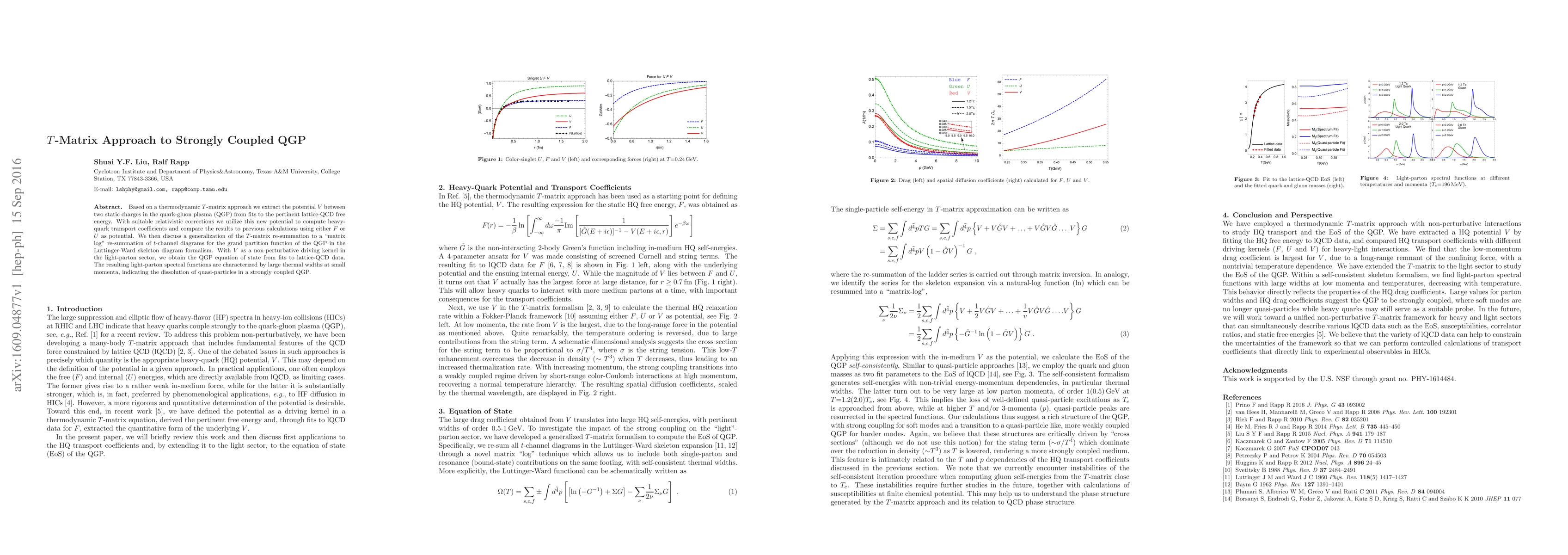 Based on a thermodynamic $T$-matrix approach we extract the potential $V$ between two static charges in the quark-gluon plasma (QGP) from fits to the pertinent lattice-QCD free energy. With suitable relativistic corrections we utilize this new potential to compute heavy-quark transport coefficients and compare the results to previous calculations using either $F$ or $U$ as potential. We then discuss a generalization of the $T$-matrix re-summation to a "matrix $\log$" re-summation of $t$-channel diagrams for the grand partition function of the QGP in the Luttinger-Ward skeleton diagram formalism. With $V$ as a non-perturbative driving kernel in the light-parton sector, we obtain the QGP equation of state from fits to lattice-QCD data. The resulting light-parton spectral functions are characterized by large thermal widths at small momenta, indicating the dissolution of quasi-particles in a strongly coupled QGP.