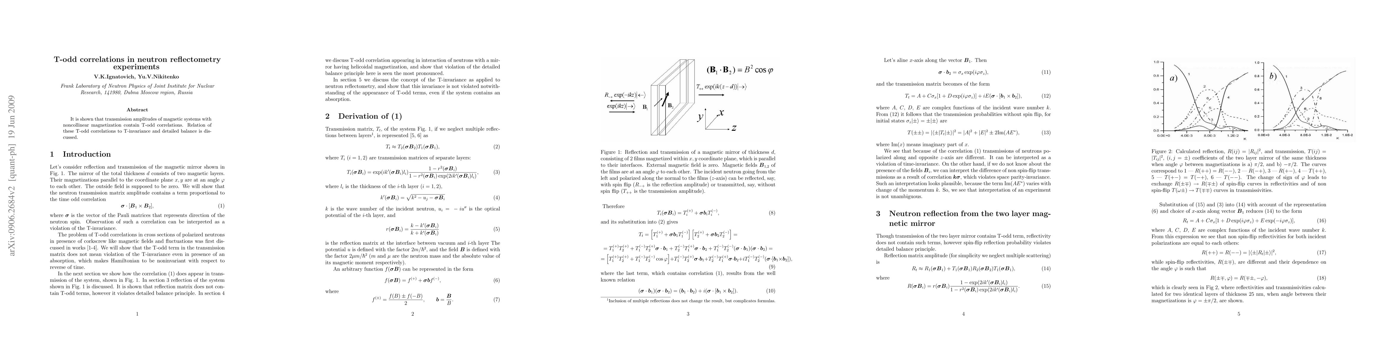 It is shown that transmission amplitudes of magnetic systems with noncollinear magnetization contain T-odd correlations. Relation of these T-odd correlations to T-invariance and detailed balance is discussed.