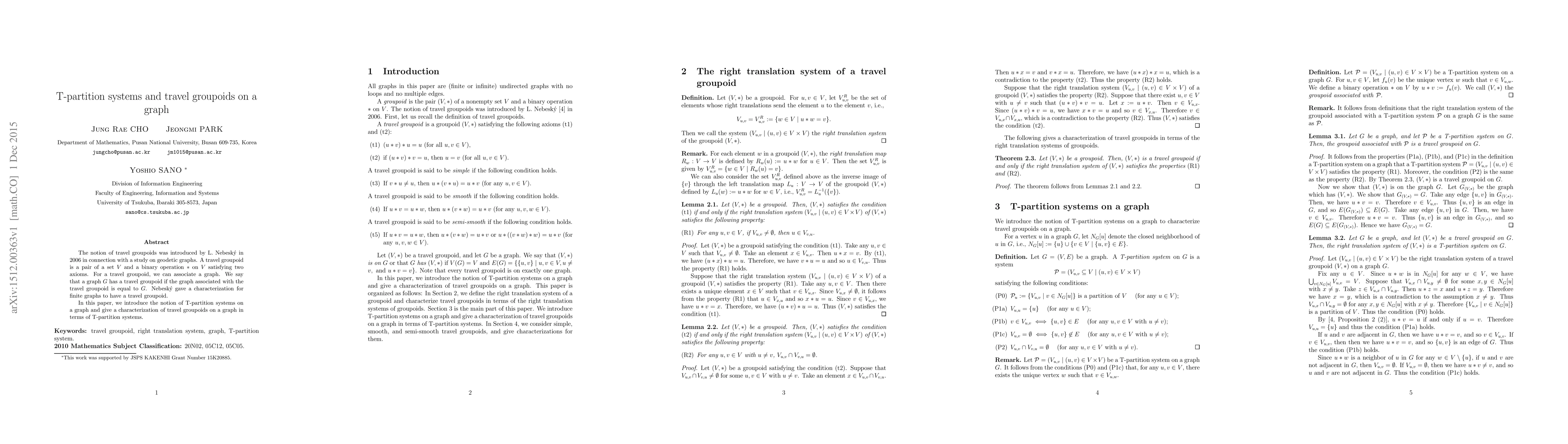 This paper introduces T-partition systems on graphs and characterizes travel groupoids on a graph using these systems, extending previous work by Nebeský on travel groupoids in geodetic graphs.