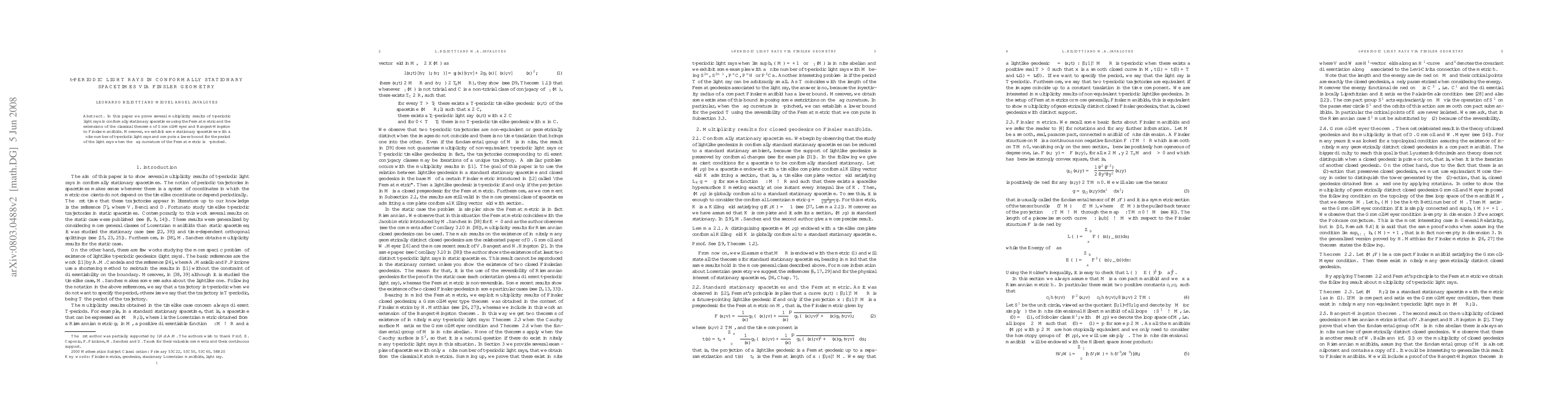 This paper proves multiplicity results for $t$-periodic light rays in conformally stationary spacetimes using Finsler geometry and extends classical theorems to this context. It also identifies specific spacetimes with a finite number of such light rays and establishes a lower bound for their period under certain curvature conditions.