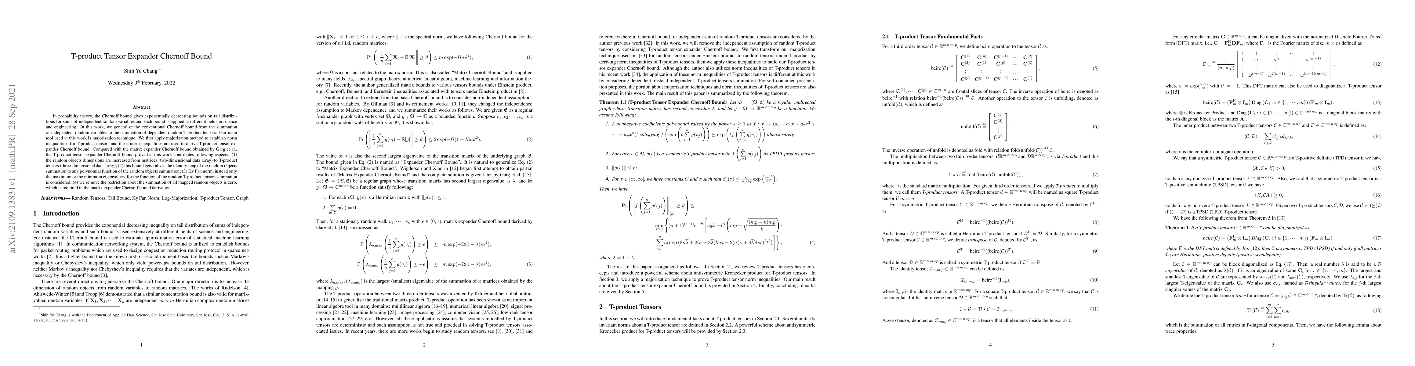 This paper generalizes the Chernoff bound to dependent random T-product tensors, employing majorization techniques to derive norm inequalities and a tensor expander Chernoff bound. This new bound extends the matrix expander Chernoff bound by handling higher-dimensional tensors and polynomial functions of their sums.