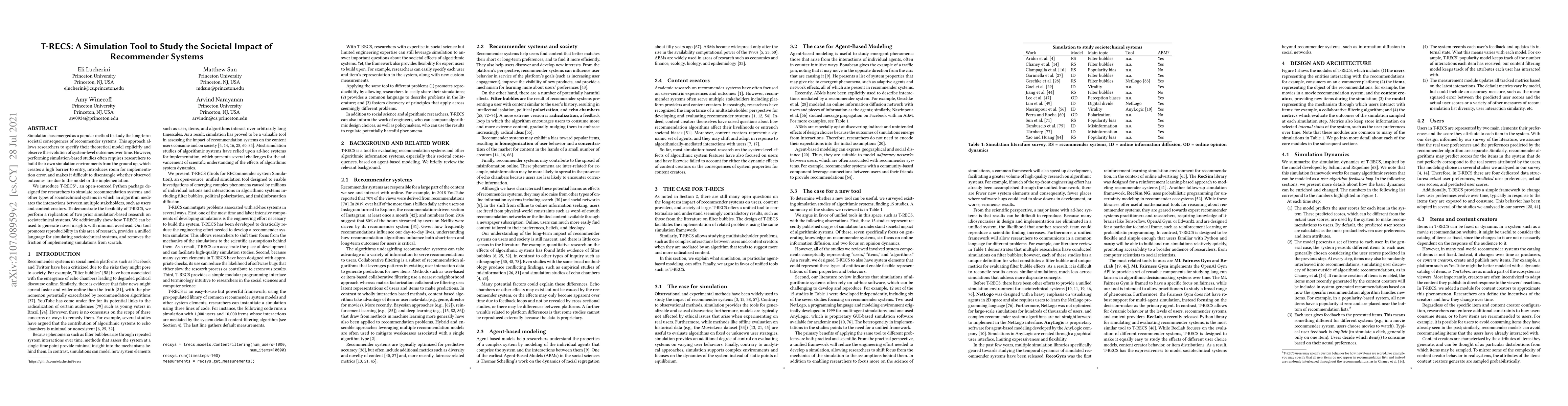A new tool called T-RECS allows researchers to simulate the impact of recommender systems on society, promoting reproducibility and ease of use in this field of study.