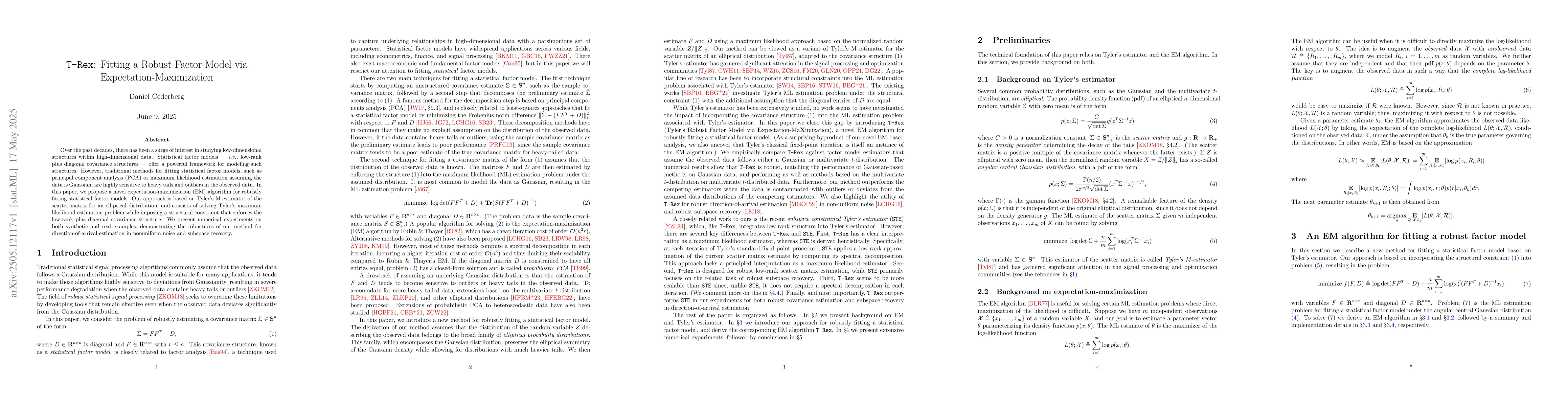 The research proposes an expectation-maximization (EM) algorithm for robustly fitting statistical factor models, based on Tyler's M-estimator of the scatter matrix for elliptical distributions, while imposing a structural constraint for low-rank plus diagonal covariance structure.