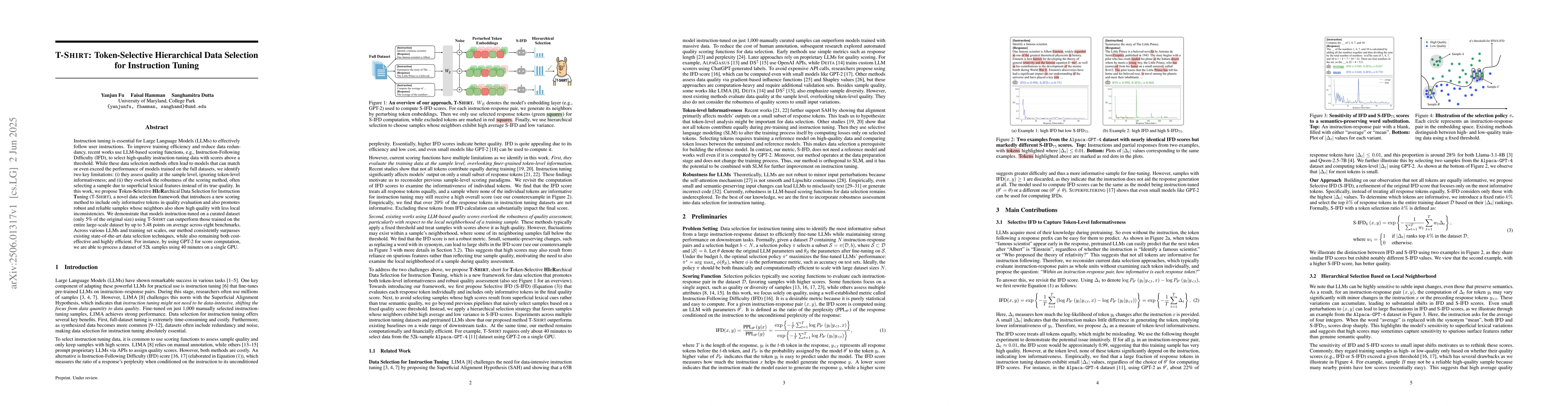 T-SHIRT introduces a novel hierarchical data selection framework focusing on token-level informativeness and sample robustness, improving instruction tuning for LLMs.