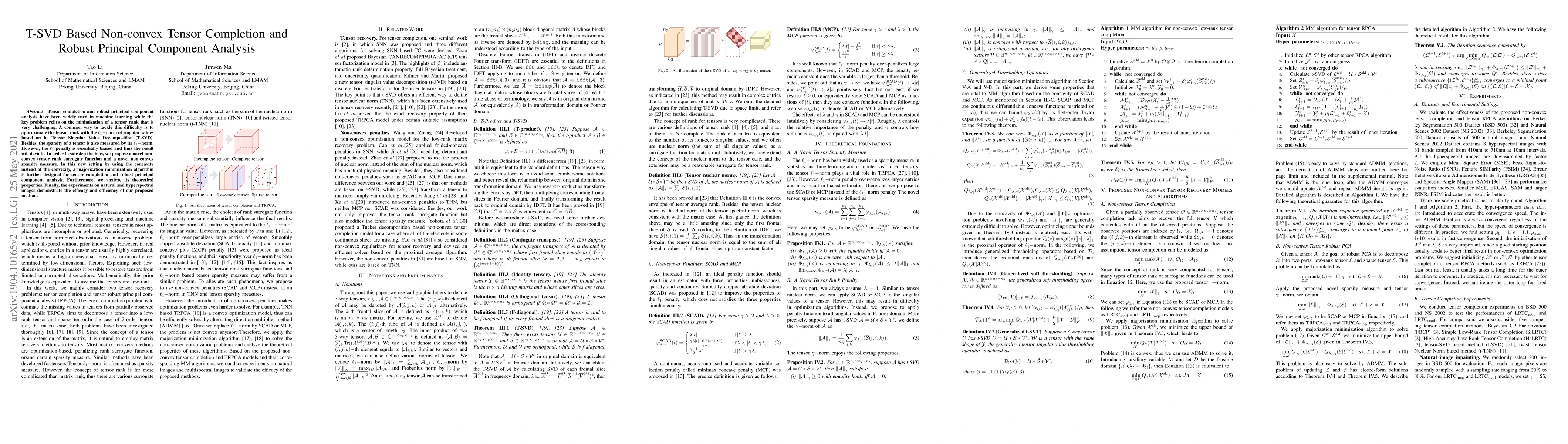 This paper proposes a novel non-convex tensor rank surrogate function and a non-convex sparsity measure to address the bias in $\ell_1$-norms for tensor completion and robust principal component analysis. A majorization minimization algorithm is developed and theoretically analyzed, with experiments on images showing its effectiveness.
