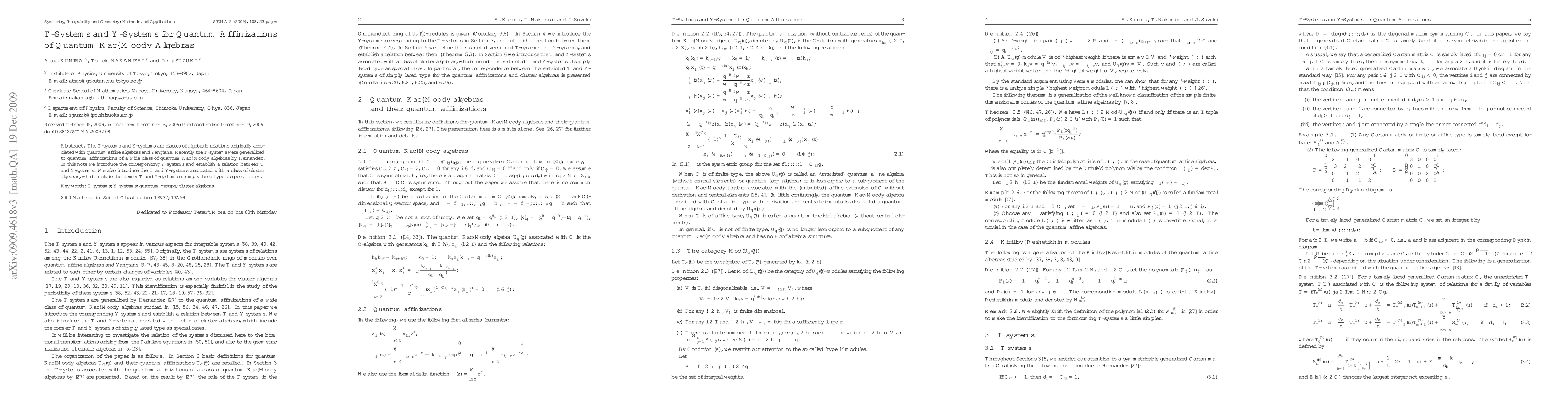 The T-systems and Y-systems are classes of algebraic relations originally associated with quantum affine algebras and Yangians. Recently the T-systems were generalized to quantum affinizations of a wide class of quantum Kac-Moody algebras by Hernandez. In this note we introduce the corresponding Y-systems and establish a relation between T and Y-systems. We also introduce the T and Y-systems associated with a class of cluster algebras, which include the former T and Y-systems of simply laced type as special cases.