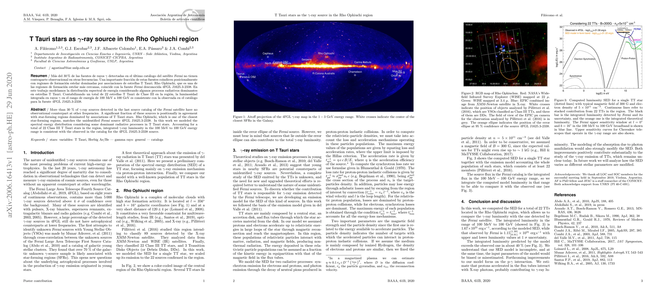 T Tauri stars in the Rho Ophiuchi region are proposed as a new source of gamma-ray emissions, with 22 Class III stars consistent with observed luminosity in the Fermi satellite catalog.