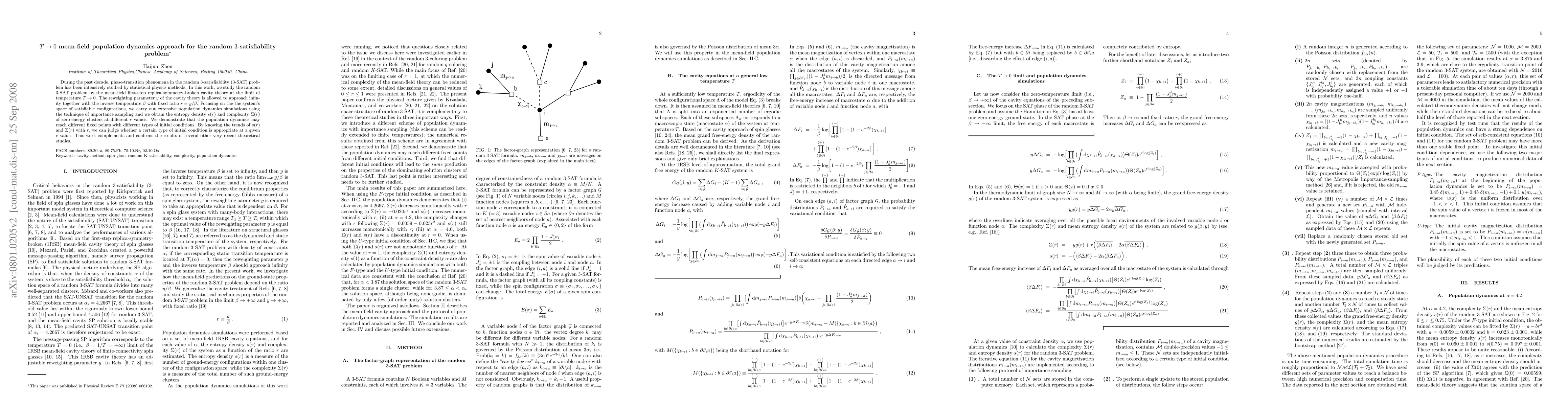 This paper employs mean-field theory and population dynamics simulations to study the phase transition in the random 3-SAT problem as temperature approaches zero, revealing different fixed points based on initial conditions and providing insights into entropy density and complexity. The findings support recent theoretical studies on the subject.