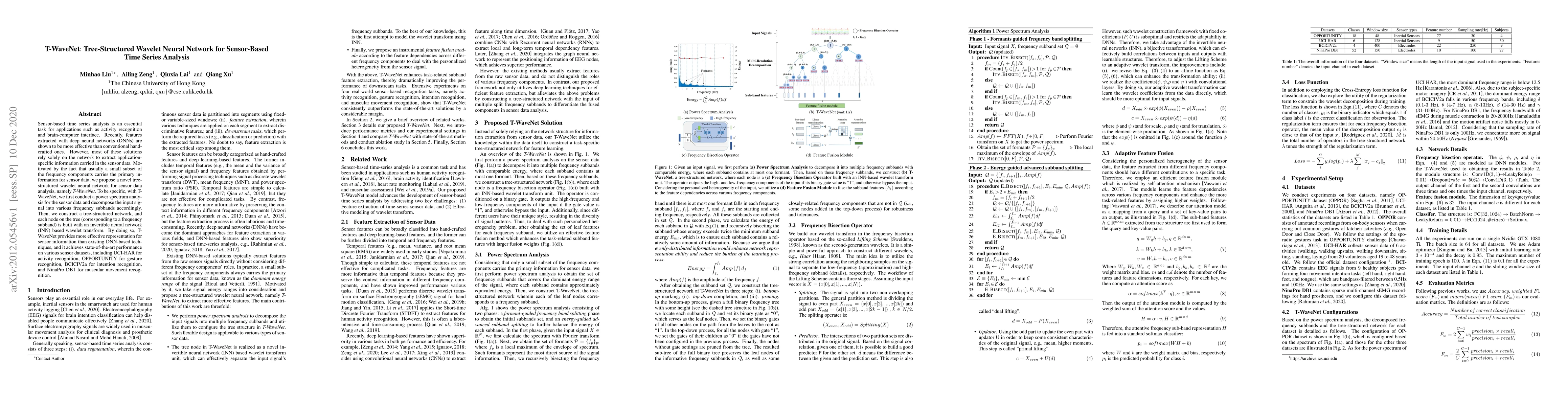 T-WaveNet is a tree-structured wavelet neural network designed for sensor-based time series analysis, utilizing frequency decomposition and invertible neural networks for superior feature extraction and state-of-the-art performance in activity, gesture, intention, and muscular movement recognition.