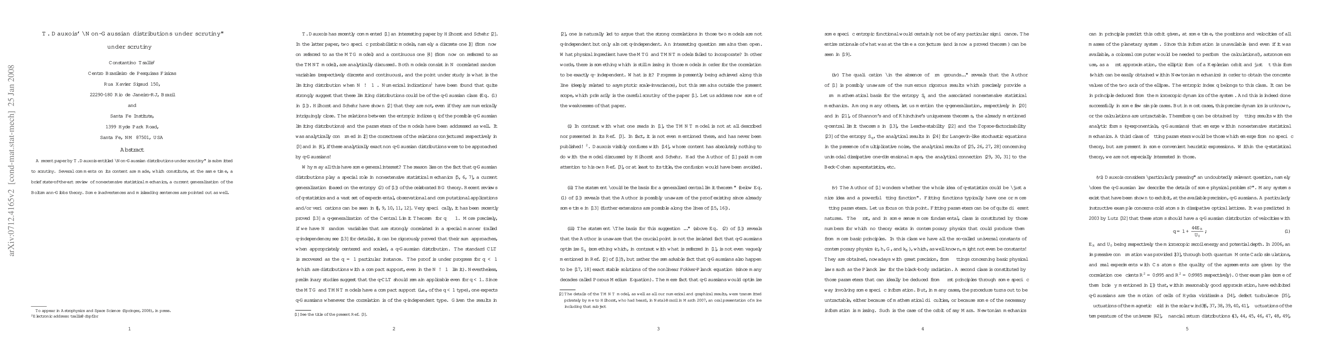A recent paper critiques T. Dauxois' work on non-Gaussian distributions in statistical mechanics, highlighting key findings and methodological errors.