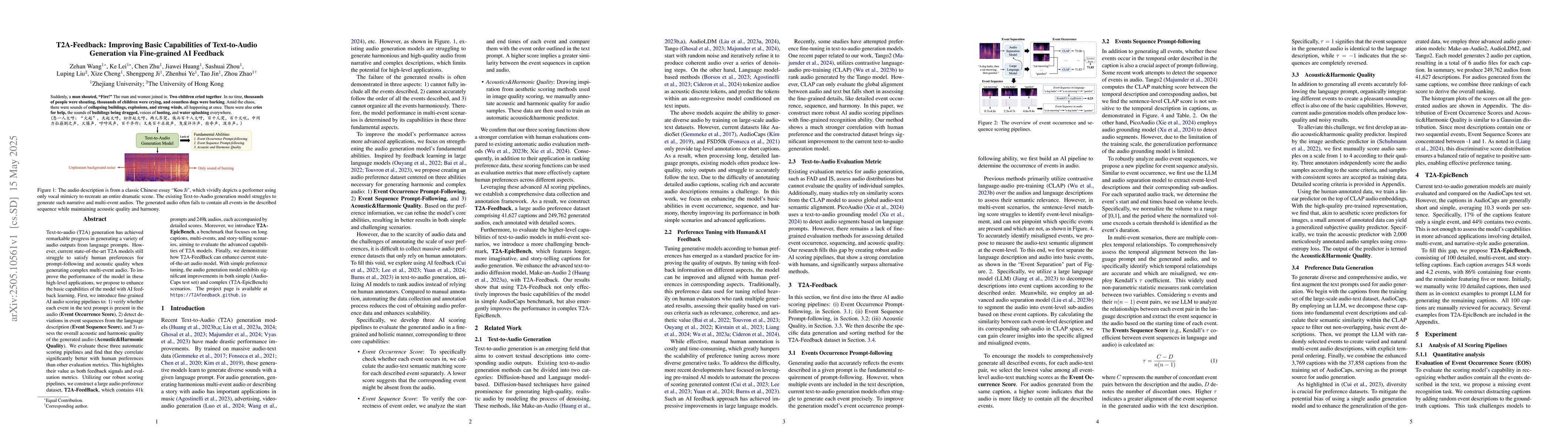 The research introduces fine-grained AI audio scoring pipelines to evaluate T2A models based on Event Occurrence Score, Event Sequence Score, and Acoustic&Harmonic Quality. A large audio preference dataset, T2A-FeedBack, and a benchmark, T2A-EpicBench, are constructed for model improvement and evaluation.