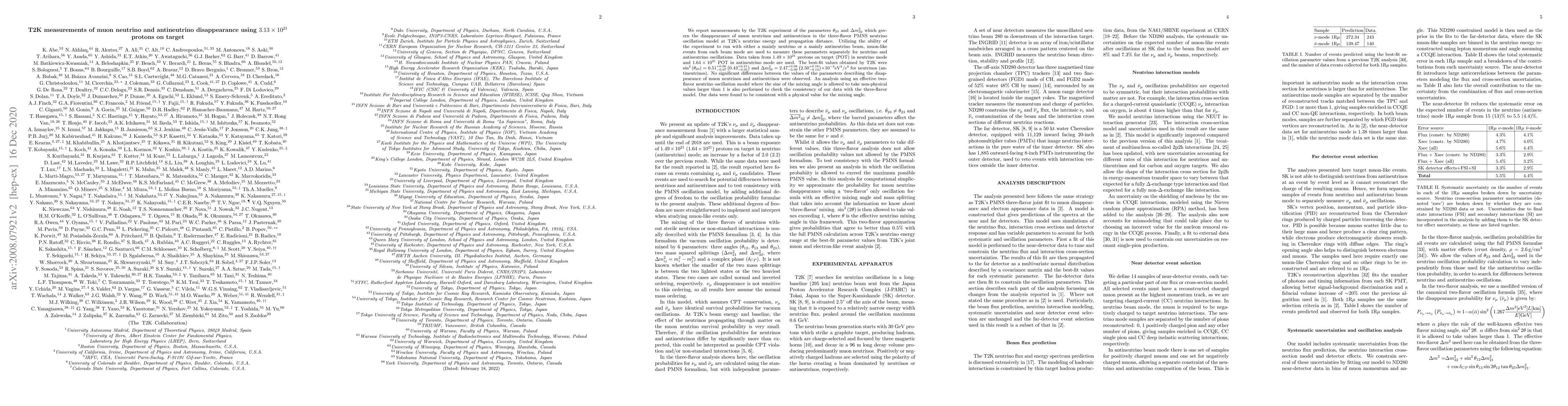 The T2K experiment measures the parameters $\theta_{23}$ and $\Delta m^2_{32}$ governing muon neutrino and antineutrino disappearance, finding no significant differences between them. Best-fit values are $\sin^2\left(\theta_{23}\right)=0.51^{+0.06}_{-0.07}$ and $\Delta m^2_{32}=2.47^{+0.08}_{-0.09}$ eV², consistent with a physical mixing angle.