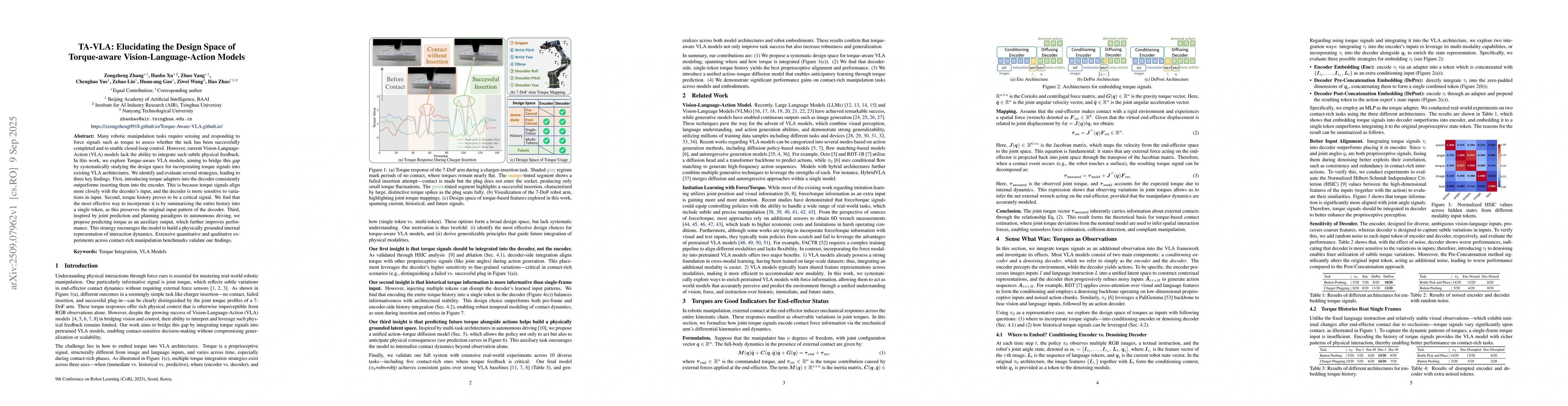Many robotic manipulation tasks require sensing and responding to force signals such as torque to assess whether the task has been successfully completed and to enable closed-loop control. However, current Vision-Language-Action (VLA) models lack the ability to integrate such subtle physical feedback. In this work, we explore Torque-aware VLA models, aiming to bridge this gap by systematically studying the design space for incorporating torque signals into existing VLA architectures. We identify and evaluate several strategies, leading to three key findings. First, introducing torque adapters into the decoder consistently outperforms inserting them into the encoder.Third, inspired by joint prediction and planning paradigms in autonomous driving, we propose predicting torque as an auxiliary output, which further improves performance. This strategy encourages the model to build a physically grounded internal representation of interaction dynamics. Extensive quantitative and qualitative experiments across contact-rich manipulation benchmarks validate our findings.