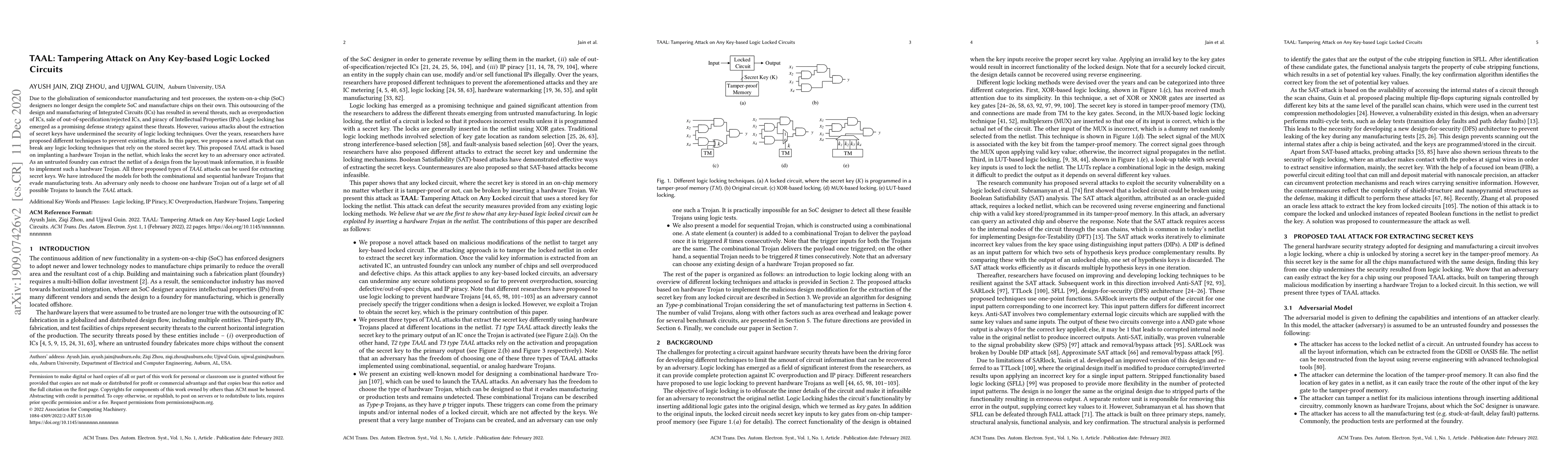 Researchers propose a new attack called TAAL that can break any logic locking technique by implanting a hardware Trojan to leak the secret key, compromising the security of Integrated Circuits.