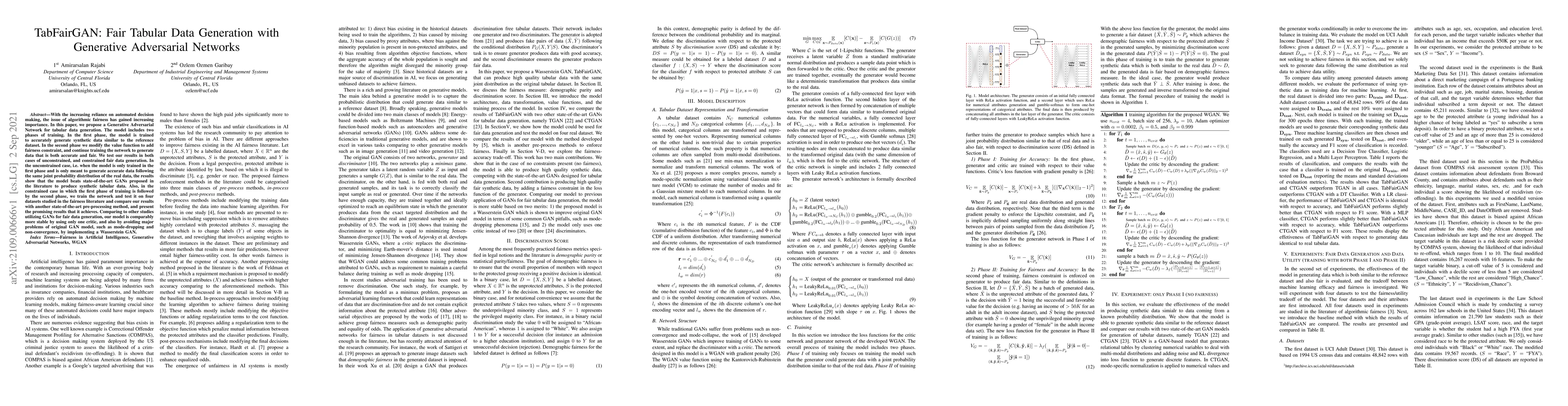 The paper introduces TabFairGAN, a Generative Adversarial Network for generating fair synthetic tabular data. It trains in two phases: first to generate accurate data, then to incorporate fairness constraints. The model outperforms other GANs in accuracy and shows promising results in fairness, while maintaining stability through a Wasserstein GAN approach.