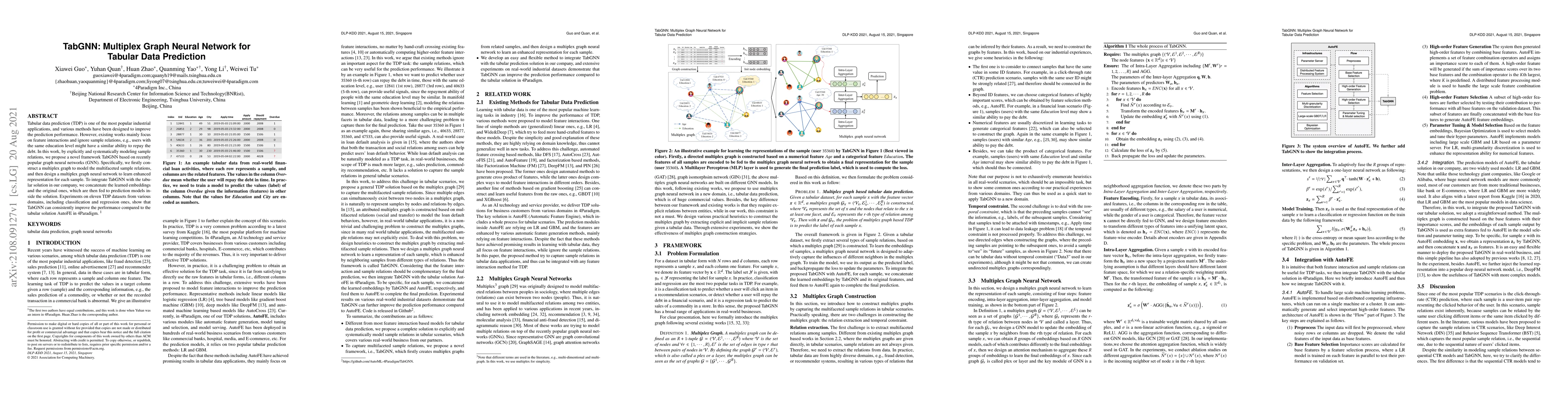Tabular data prediction (TDP) is one of the most popular industrial applications, and various methods have been designed to improve the prediction performance. However, existing works mainly focus on feature interactions and ignore sample relations, e.g., users with the same education level might have a similar ability to repay the debt. In this work, by explicitly and systematically modeling sample relations, we propose a novel framework TabGNN based on recently popular graph neural networks (GNN). Specifically, we firstly construct a multiplex graph to model the multifaceted sample relations, and then design a multiplex graph neural network to learn enhanced representation for each sample. To integrate TabGNN with the tabular solution in our company, we concatenate the learned embeddings and the original ones, which are then fed to prediction models inside the solution. Experiments on eleven TDP datasets from various domains, including classification and regression ones, show that TabGNN can consistently improve the performance compared to the tabular solution AutoFE in 4Paradigm.