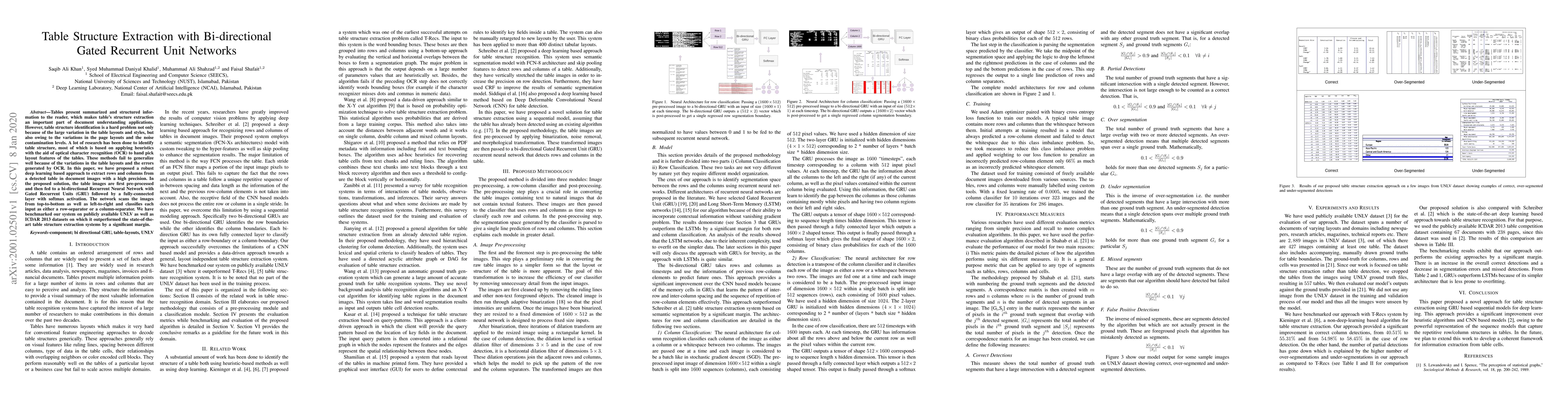 Tables present summarized and structured information to the reader, which makes table structure extraction an important part of document understanding applications. However, table structure identification is a hard problem not only because of the large variation in the table layouts and styles, but also owing to the variations in the page layouts and the noise contamination levels. A lot of research has been done to identify table structure, most of which is based on applying heuristics with the aid of optical character recognition (OCR) to hand pick layout features of the tables. These methods fail to generalize well because of the variations in the table layouts and the errors generated by OCR. In this paper, we have proposed a robust deep learning based approach to extract rows and columns from a detected table in document images with a high precision. In the proposed solution, the table images are first pre-processed and then fed to a bi-directional Recurrent Neural Network with Gated Recurrent Units (GRU) followed by a fully-connected layer with soft max activation. The network scans the images from top-to-bottom as well as left-to-right and classifies each input as either a row-separator or a column-separator. We have benchmarked our system on publicly available UNLV as well as ICDAR 2013 datasets on which it outperformed the state-of-the-art table structure extraction systems by a significant margin.