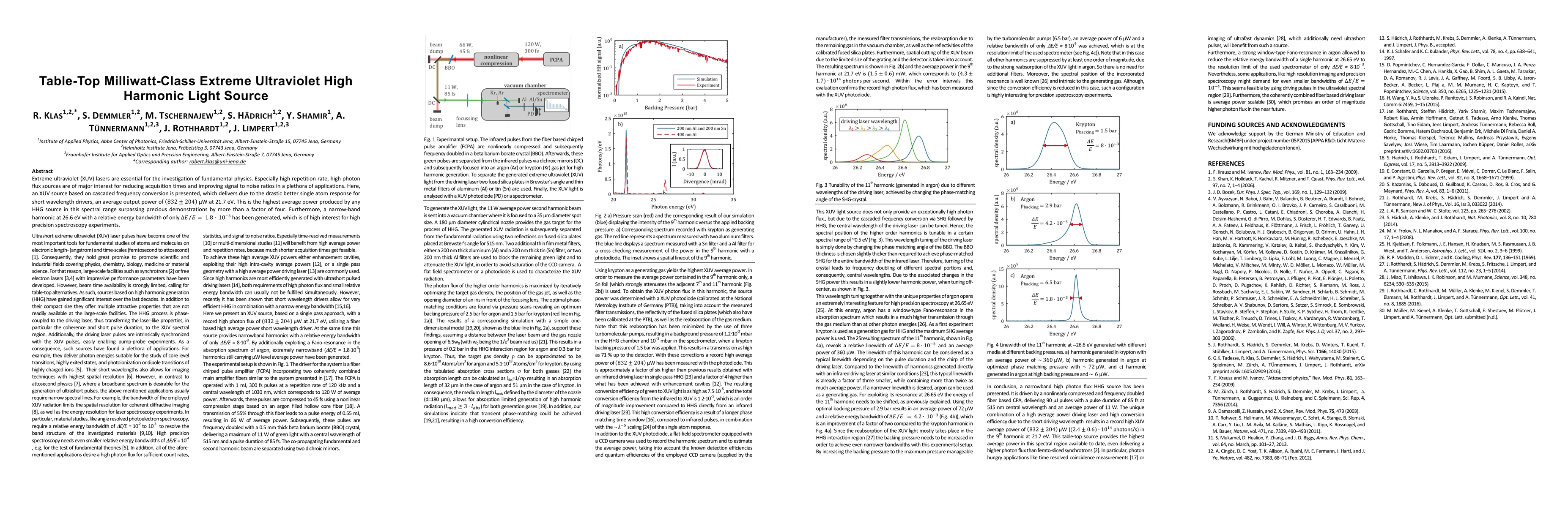 This paper presents a table-top extreme ultraviolet (XUV) laser source based on cascaded frequency conversion, achieving an average output power of 832 ± 204 μW at 21.7 eV, the highest in this spectral range, and a narrow-band harmonic at 26.6 eV for high precision spectroscopy.