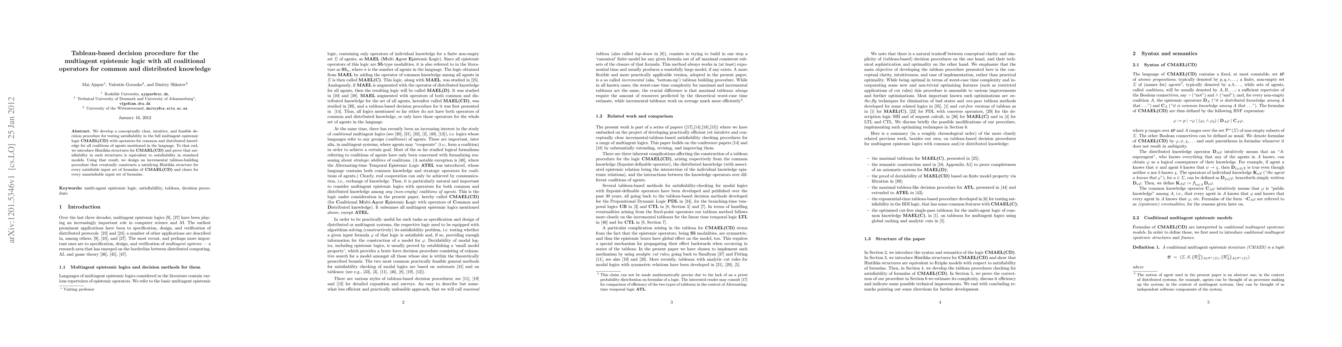 This paper presents a decision procedure for testing satisfiability in multi-agent epistemic logic CMAEL(CD), utilizing Hintikka structures and an incremental tableau-building method to construct satisfying structures for satisfiable formulae and close for unsatisfiable ones. The procedure handles operators for common and distributed knowledge across all coalitions of agents.