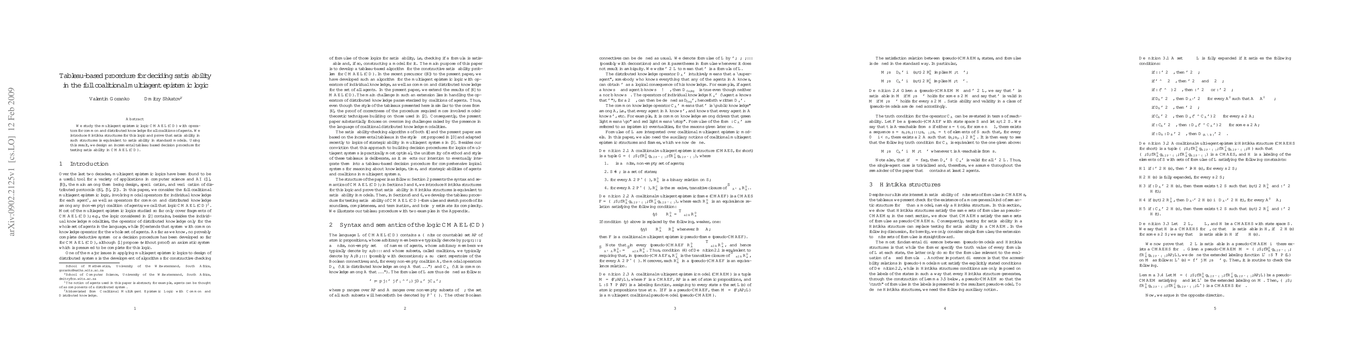 This paper introduces a tableau-based procedure for deciding satisfiability in the full coalitional multiagent epistemic logic (CMAELCD), utilizing Hintikka structures to establish equivalence with standard models and enabling an incremental decision method for logical statements.