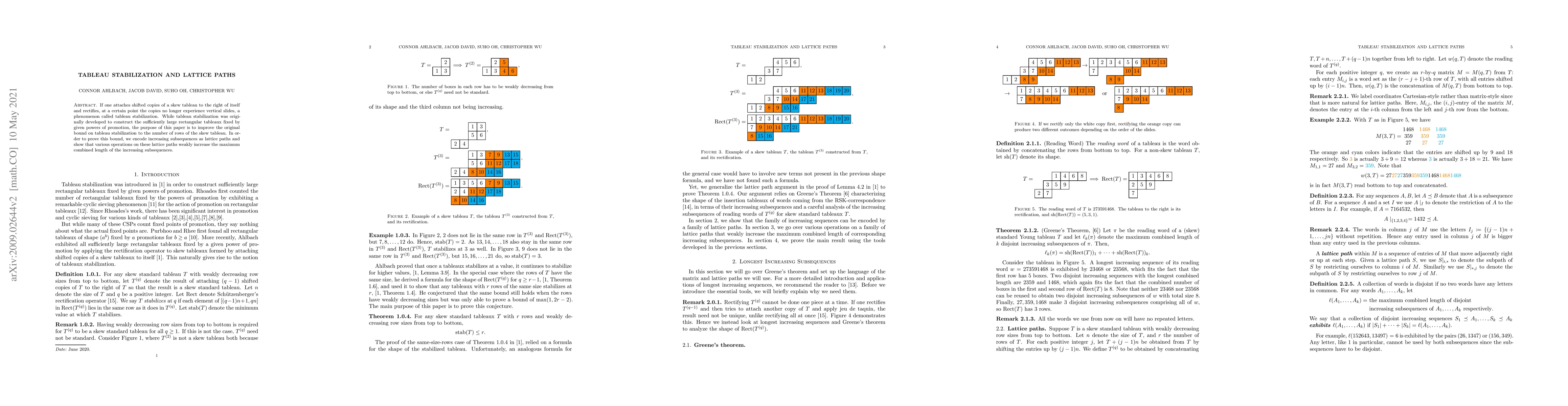 This paper improves the original bound on tableau stabilization in skew tableaux to the number of rows, showing that stabilization occurs based on the skew tableau's rows. It encodes increasing subsequences as lattice paths to demonstrate that operations weakly increase the maximum combined length of these subsequences.