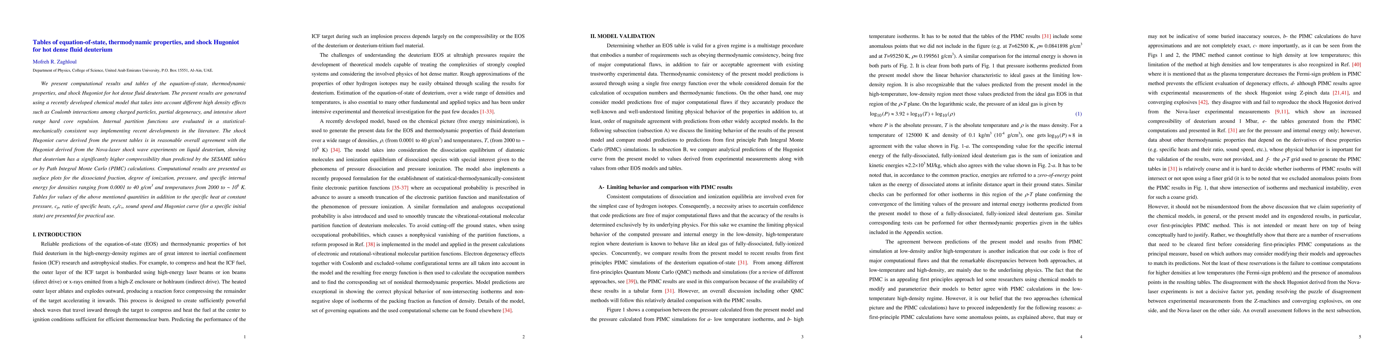 This paper presents computational results and tables for the equation-of-state, thermodynamic properties, and shock Hugoniot of hot dense fluid deuterium, using a new chemical model that considers high-density effects. The Hugoniot curve shows significant higher compressibility compared to previous models.