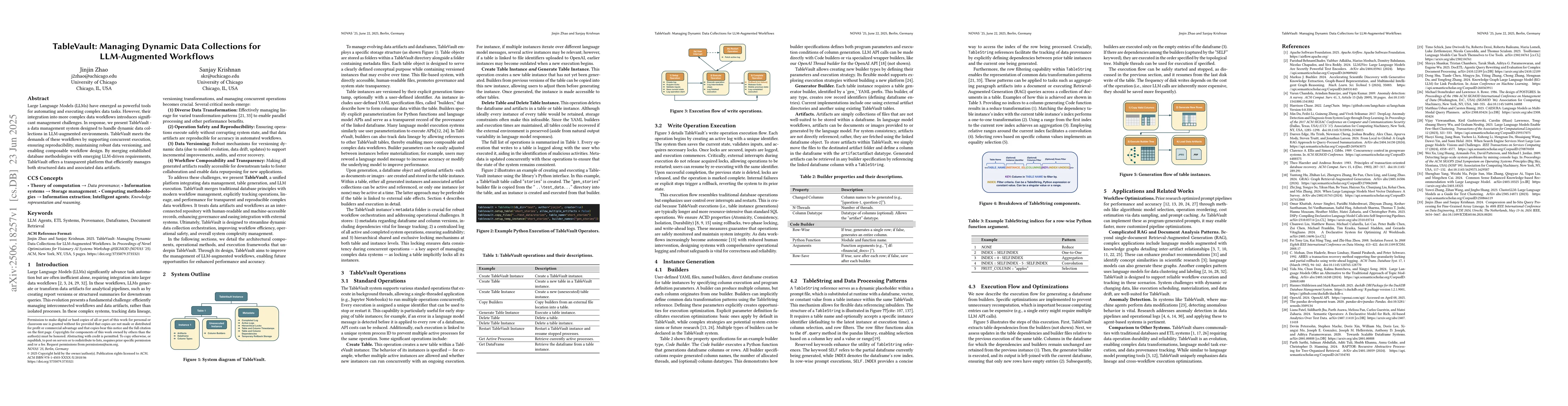 Large Language Models (LLMs) have emerged as powerful tools for automating and executing complex data tasks. However, their integration into more complex data workflows introduces significant management challenges. In response, we present TableVault - a data management system designed to handle dynamic data collections in LLM-augmented environments. TableVault meets the demands of these workflows by supporting concurrent execution, ensuring reproducibility, maintaining robust data versioning, and enabling composable workflow design. By merging established database methodologies with emerging LLM-driven requirements, TableVault offers a transparent platform that efficiently manages both structured data and associated data artifacts.