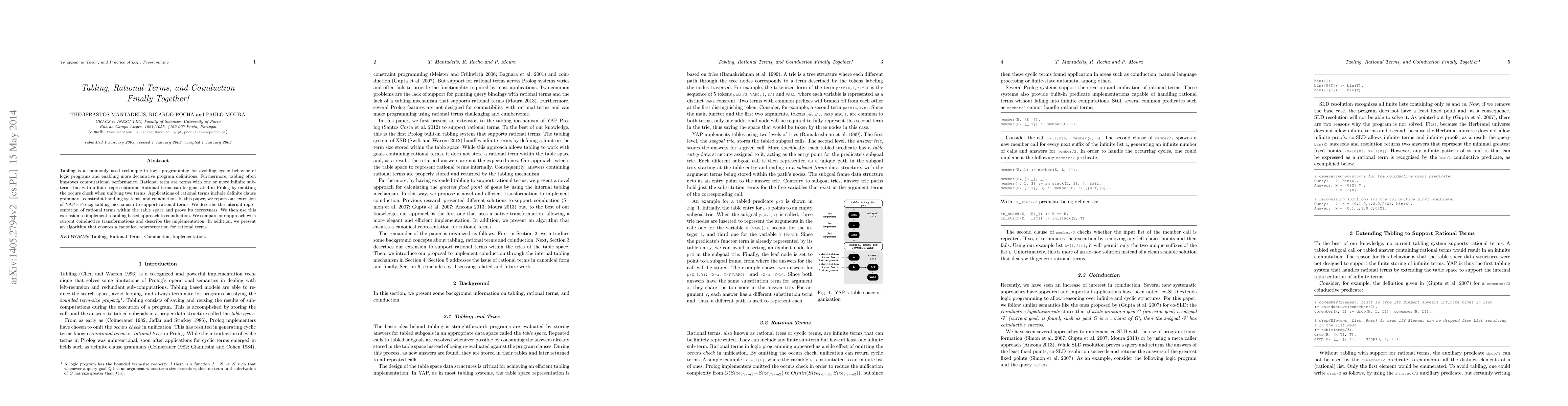 This paper extends YAP's Prolog tabling mechanism to support rational terms, which have infinite sub-terms but finite representation, enhancing applications like coinduction and definite clause grammars. The authors describe the internal representation and correctness of rational terms and implement a tabling-based approach for coinduction.