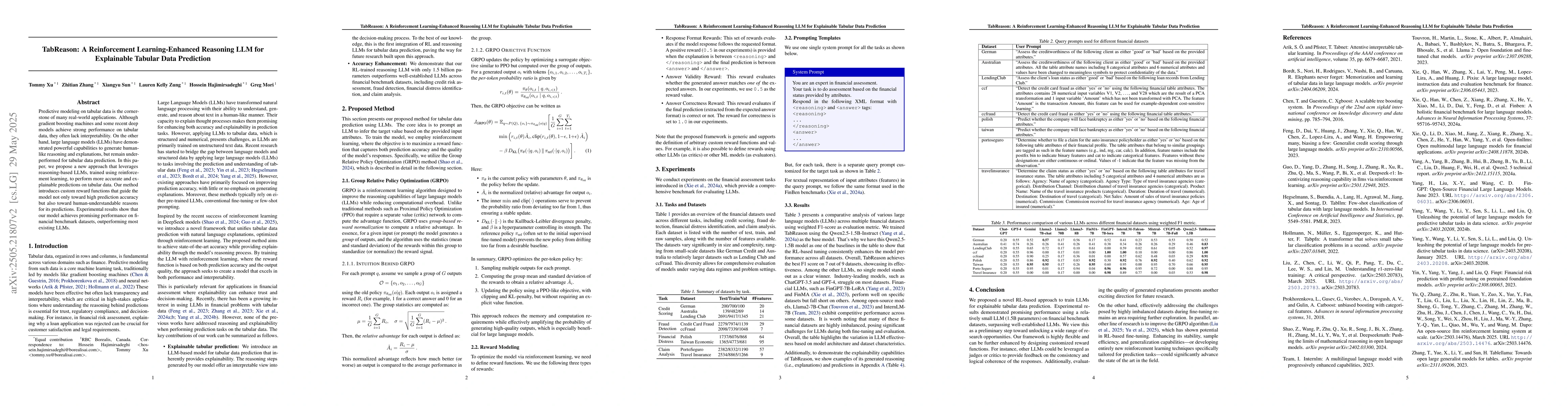 A new approach leverages reinforcement learning to enhance large language models for tabular data prediction, achieving promising performance and explainability on financial benchmark datasets.