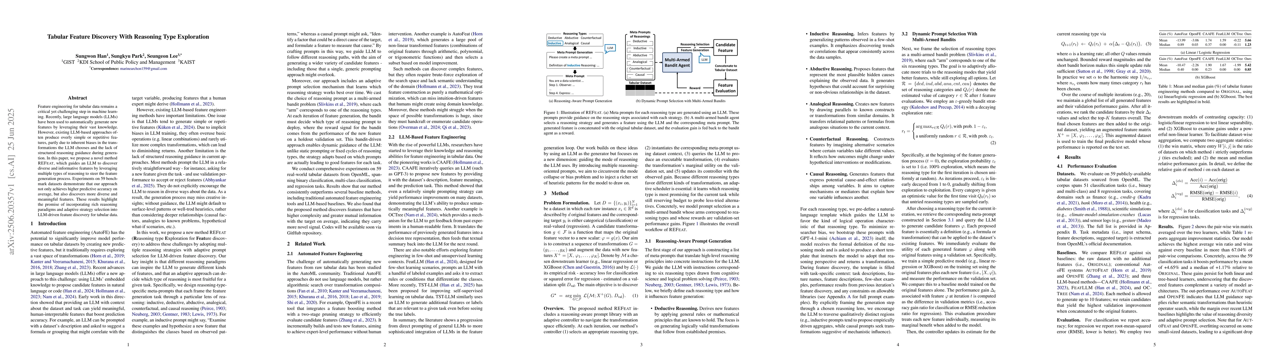 Feature engineering for tabular data remains a critical yet challenging step in machine learning. Recently, large language models (LLMs) have been used to automatically generate new features by leveraging their vast knowledge. However, existing LLM-based approaches often produce overly simple or repetitive features, partly due to inherent biases in the transformations the LLM chooses and the lack of structured reasoning guidance during generation. In this paper, we propose a novel method REFeat, which guides an LLM to discover diverse and informative features by leveraging multiple types of reasoning to steer the feature generation process. Experiments on 59 benchmark datasets demonstrate that our approach not only achieves higher predictive accuracy on average, but also discovers more diverse and meaningful features. These results highlight the promise of incorporating rich reasoning paradigms and adaptive strategy selection into LLM-driven feature discovery for tabular data.