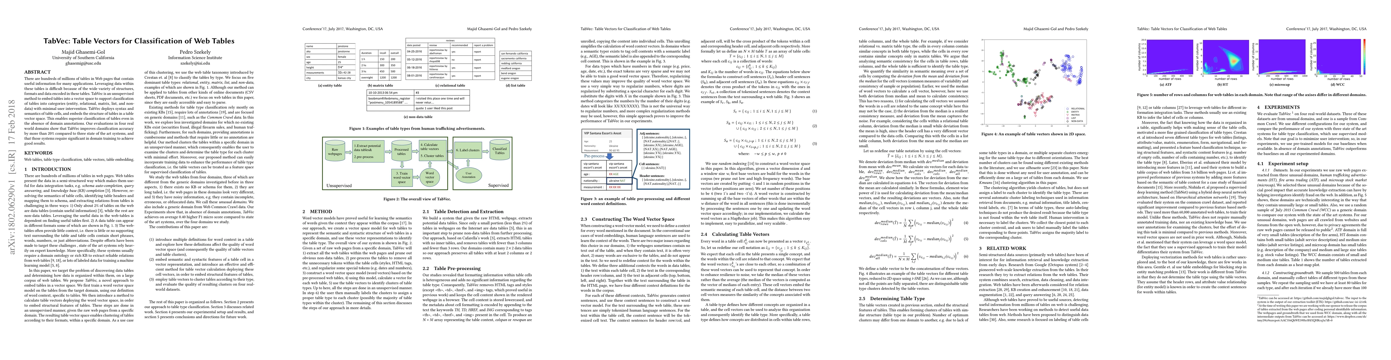 TabVec is an unsupervised method that embeds web tables into a vector space to classify them into categories using their syntax and semantics, achieving over 20% higher accuracy than state-of-the-art systems with minimal domain annotations.