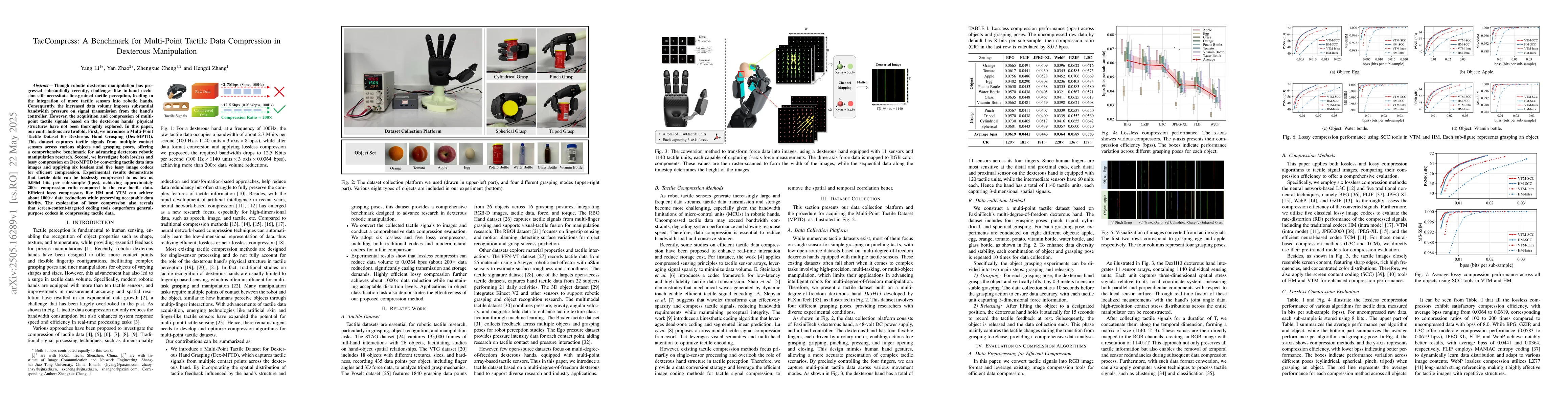 Researchers developed a dataset for dexterous hand grasping and explored lossless and lossy compression of multi-point tactile data, achieving up to 200x compression ratio, which can help reduce bandwidth pressure in robotic hands.