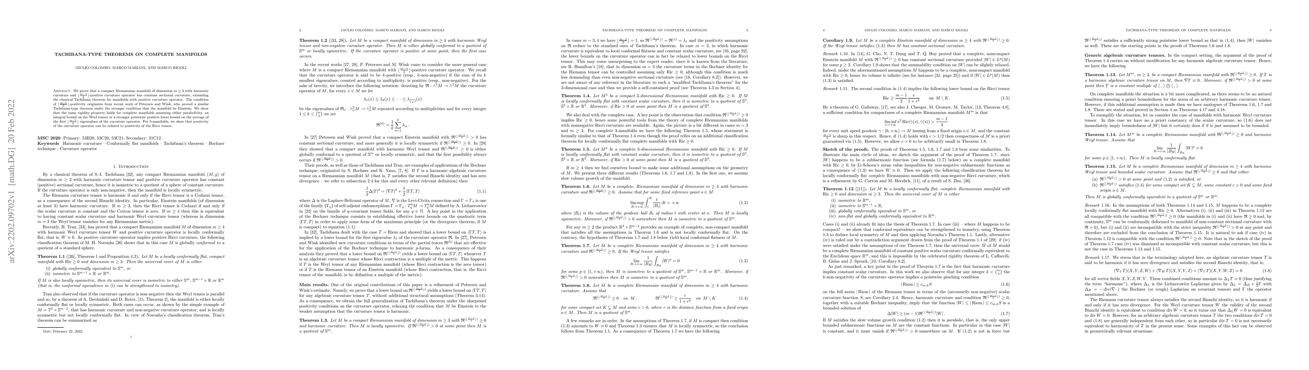 The novelty lies in extending Tachibana's theorem to complete manifolds under weaker conditions, incorporating harmonic curvature and relaxing the positive curvature operator requirement for 3-manifolds to a positive Ricci tensor.