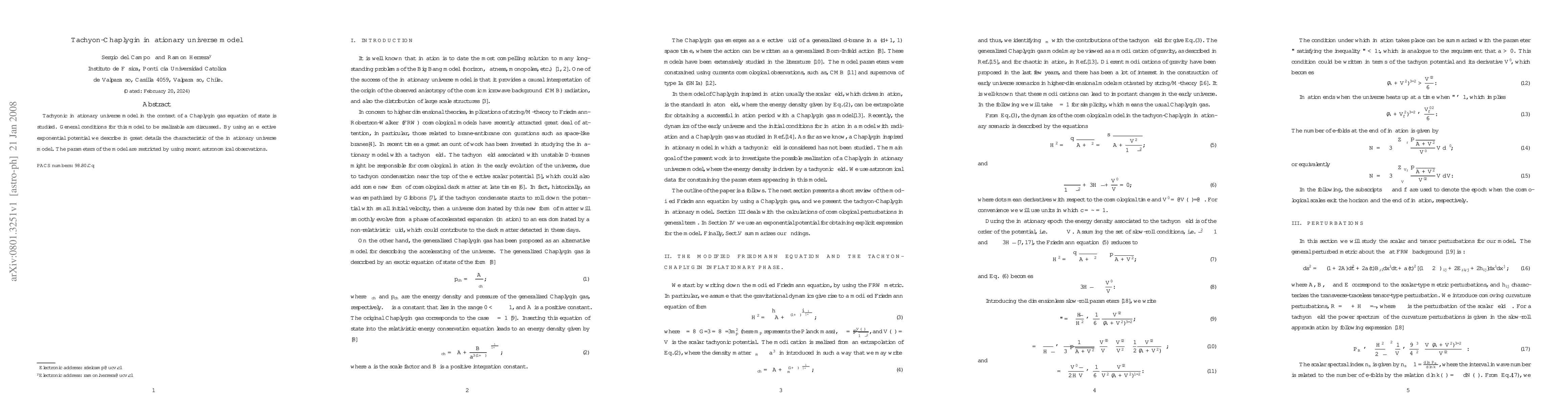 This paper explores a tachyonic inflationary universe model based on the Chaplygin gas equation of state, detailing its general conditions for realization and characteristics through an effective exponential potential. Parameters are constrained by recent astronomical observations.