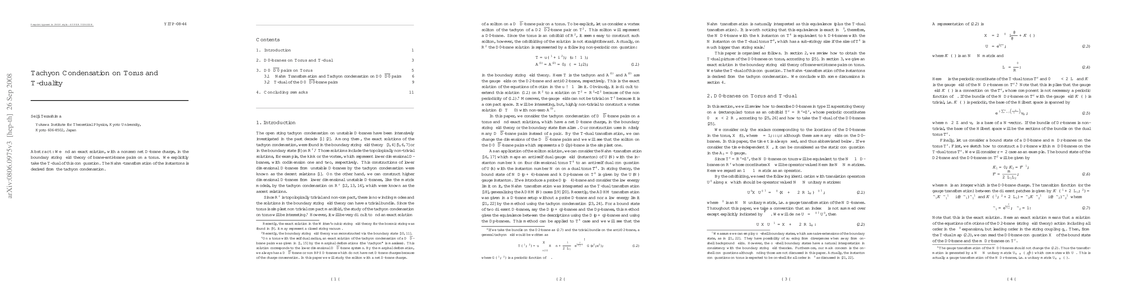 Summary: This paper presents an exact solution in boundary string field theory for brane-anti-brane pairs on a torus, demonstrating nonzero net D-brane charge and deriving the Nahm-transformation of instantons from tachyon condensation, followed by an explicit T-duality transformation.