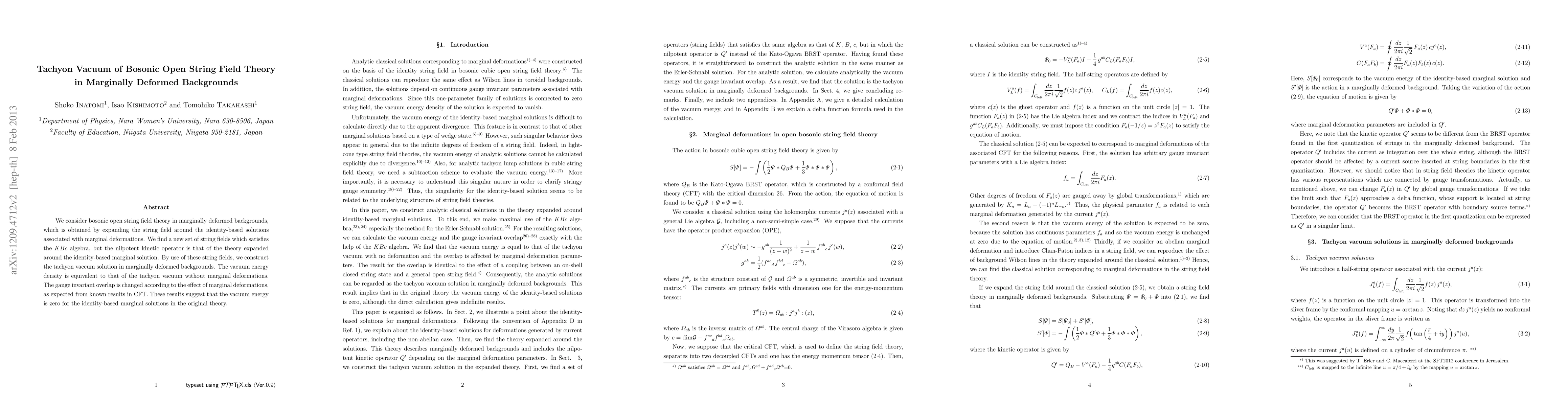 This paper explores bosonic open string field theory in marginally deformed backgrounds, discovering new string fields that satisfy the KBc algebra. It constructs a tachyon vacuum solution, showing that the vacuum energy density remains the same as in undeformed cases, while the gauge invariant overlap changes due to marginal deformations, indicating zero vacuum energy for identity-based marginal solutions.