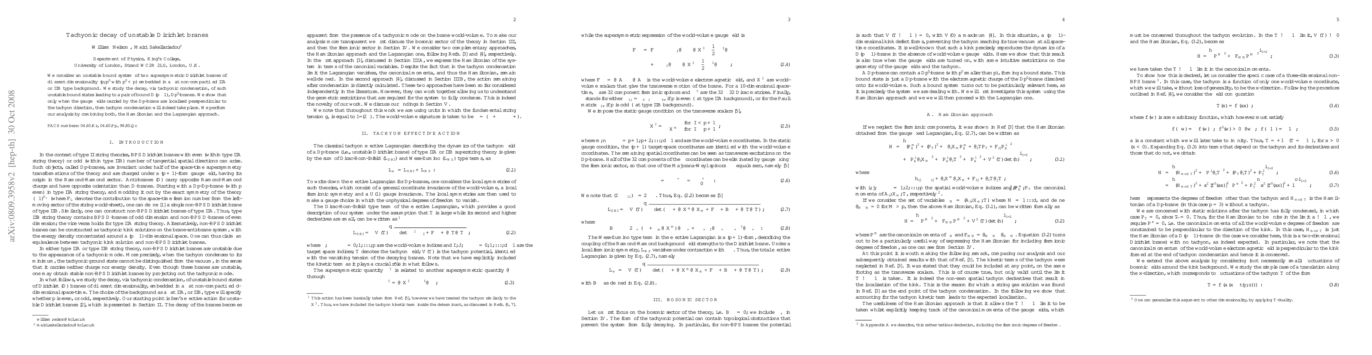 This paper investigates the tachyonic decay of unstable bound systems of supersymmetric Dirichlet branes in a flat IIA or IIB background, demonstrating that tachyonic condensation occurs only when the gauge fields of the D$p$-brane are localized perpendicular to the tachyon direction. The analysis employs both Hamiltonian and Lagrangian approaches to reach this conclusion.