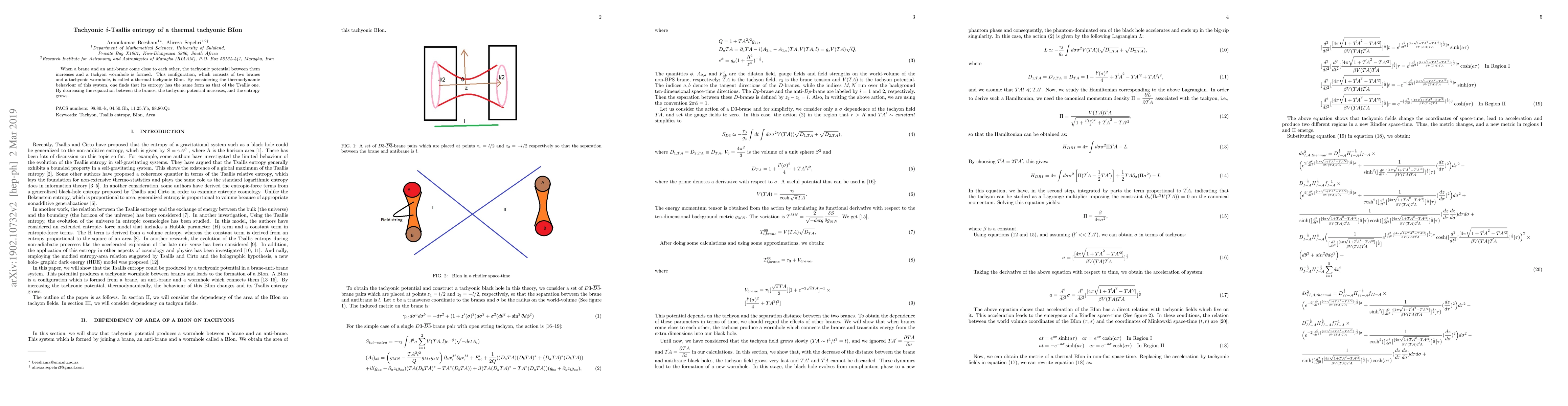 When a brane and an anti-brane come close to each other, the tachyonic potential between them increases and a tachyon wormhole is formed. This configuration, which consists of two branes and a tachyonic wormhole, is called a thermal tachyonic BIon. By considering the thermodynamic behaviour of this system, one finds that its entropy has the same form as that of the Tsallis one. By decreasing the separation between the branes, the tachyonic potential increases, and the entropy grows.